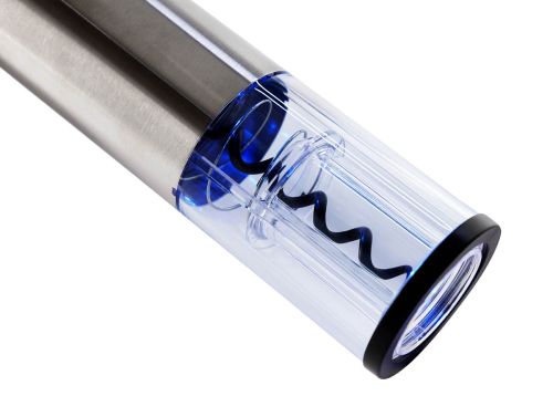 Set de sacacorchos eléctrico. Ideal para los amantes del vino. Contiene 1 sacacorchos con batería recargable y puerto tipo C, 1 cortador de papel aluminio, 1 vertedor para evitar salpicaduras, 1 tapón protector de vacío y 1 base para organizar los diferentes accesorios. Incluye cable auxiliar, manual de uso y caja individual.