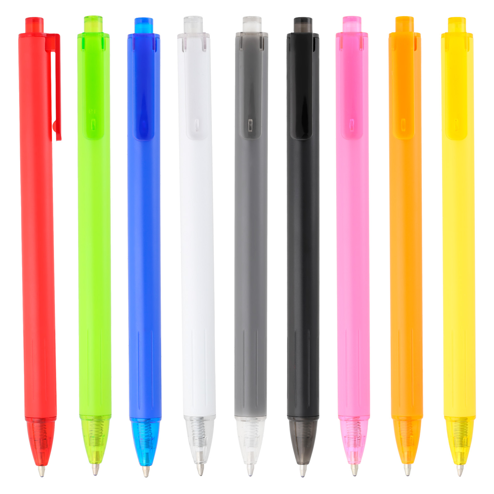 Bolígrafo de plástico color sólido; clip transparente y mecanismo de click.