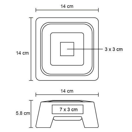 Plato de plástico cuadrado con elementos de hueso y huella de perro en los laterales; cuenta con pieza de aluminio removible.