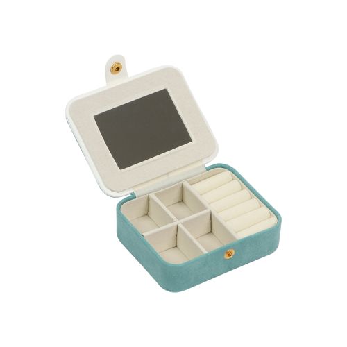 Joyero fabricado en curpiel con cierre de broche, ideal para organizar y proteger tus accesorios. Diseño sofisticado y resistente, perfecto para cualquier tocador o como regalo especial.