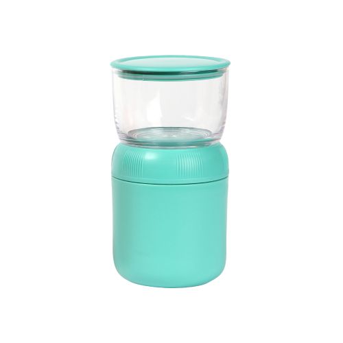 Contenedor de alimentos fabricado en polipropileno (PP). Incluye dos recipientes pequeños, uno de ellos traslúcido y una cuchara. Capacidad por ambos contenedores es de 710 ml.