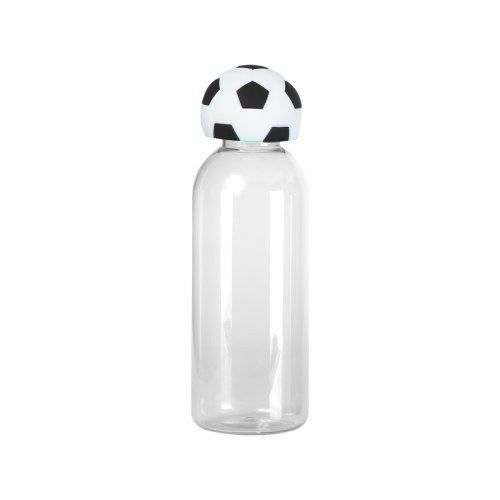 Esta botella de una pared está fabricada en AS, con una estructura ligera y resistente. Su cuerpo presenta un diseño cilíndrico de superficies lisas. Cuenta con una capacidad de 600 ml, ofreciendo un formato estable y práctico para contener líquidos. Incluye una tapa que incorpora un accesorio fabricado en silicón con forma de balón de fútbol, integrado de manera firme al conjunto. El diseño combina materiales durables con un acabado funcional y decorativo.