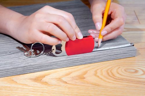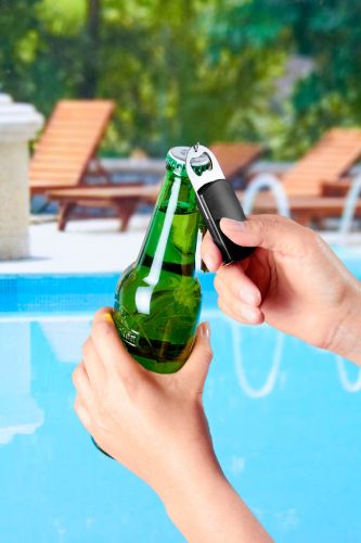 LLAVERO DESTAPADOR KINZIG(Llavero destapador con lámpara de 1 LED. Cinta metálica 1 m.)