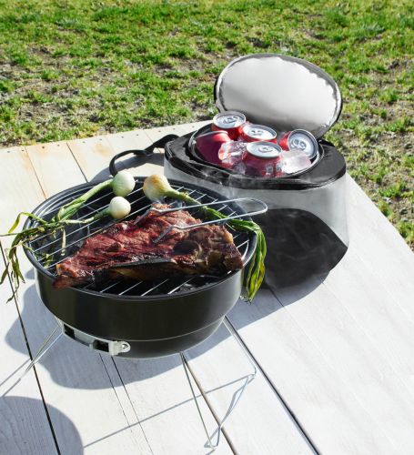ASADOR CON HIELERA PARA CAMPING(Incluye parrilla. Hielera sólo en la parte superior.)