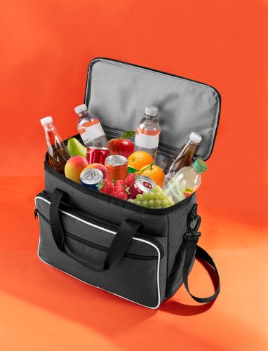 LONCHERA ALTIMA(Interior plastificado. Bolsa principal, doble bolsa frontal con cierre y correa ajustable.)