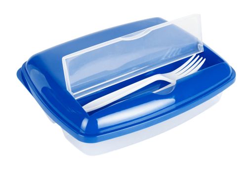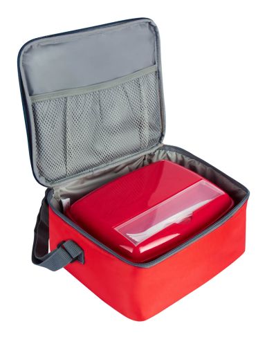 LONCHERA LUCERNA(Set de lonchera y contenedor de plástico. Lonchera con interior plastificado, bolsa de red en tapa y correa ajustable. Contenedor de plástico con tenedor y cuchillo.)