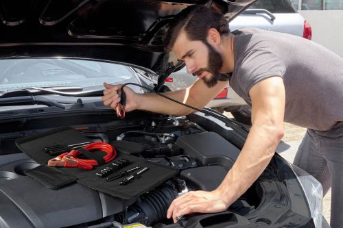SET DE EMERGENCIA HUESCA(Contiene cables pasa corriente (100 amp), 9 dados, medidor de presión de aire, desarmador punta de cruz, desarmador punta plana, desarmador para dados. Incluye estuche de tela.)
