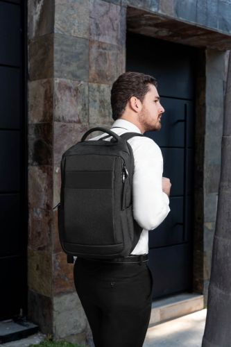 MOCHILA STOMBAR(Bolsa principal con espacio para laptop y tablet. Compartimento con organizador. Bolsa frontal con cierre. 2 Bolsas laterales. Aditamento especial trasero para poner en trolley. Compartimento con cierre oculto en la parte posterior trasera