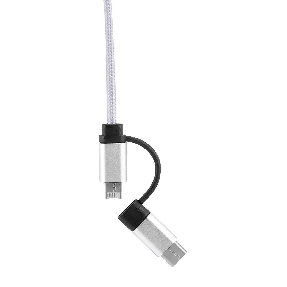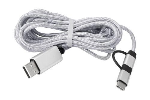 CABLE BUCAREST(Cable cargador compatible con USB, 8 pin, micro USB y entrada tipo C. Longitud de cable 3 m aproximadamente. Incluye estuche translúcido.)