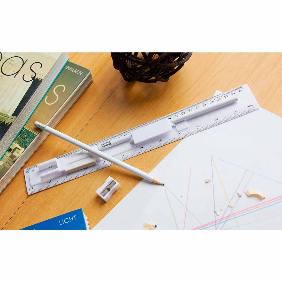 SET DE REGLA CON ACCESORIOS OBIDOS(Incluye 2 lápices, 1 borrador, 1 sacapuntas y regla de 30 cm.)