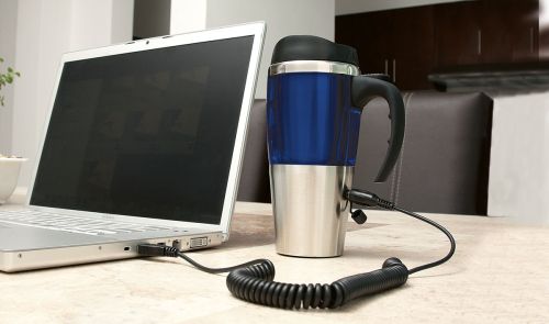 TERMO HEAT(Doble pared. Pared interior acero inoxidable, pared exterior plástico. Fuente corriente, adaptador para automóvil y USB, mantiene la temperatura de las bebidas, no calienta. Incluye válvula de seguridad.)
