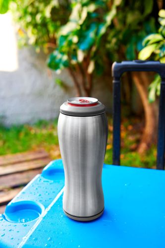 TERMO TERAMO(Doble pared. Pared interna y externa acero inoxidable. Tapas intercambiables para lata o botella. Mantiene la bebida fría.)