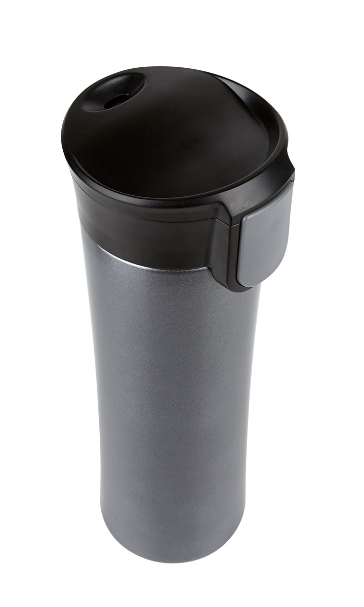 TERMO KUMASI(Doble pared. Cerrado al vacío. Pared interna y externa acero inoxidable. La tapa incluye botón pulsador para abrir y cerrar con sistema desmontable.)