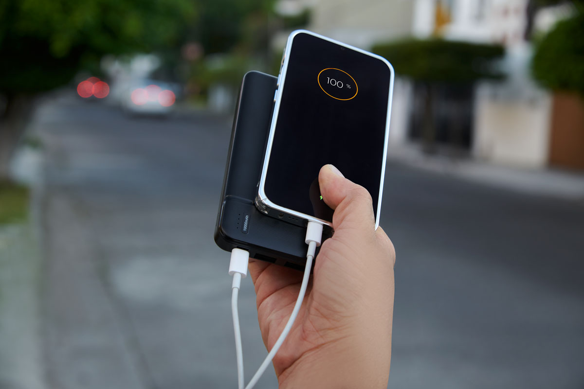 POWER BANK ESTOCOLMO(Batería auxiliar para smartphone, capacidad 10,000 mAh. Contiene 2 puertos USB, 1 tipo C y 1 micro USB. Incluye 4 LEDs indicadores de carga y cable micro USB.)