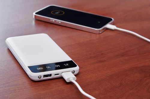 POWER BANK AMPER(Batería auxiliar para smartphone, capacidad 10,000 mAh. 2 Puertos USB y 1 micro USB. Cuenta con display de indicador de batería y 2 LEDs con función de lámpara. Incluye cable micro USB.)