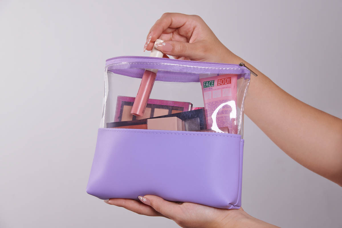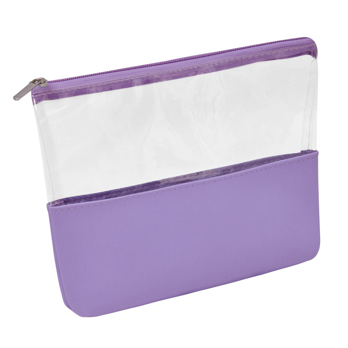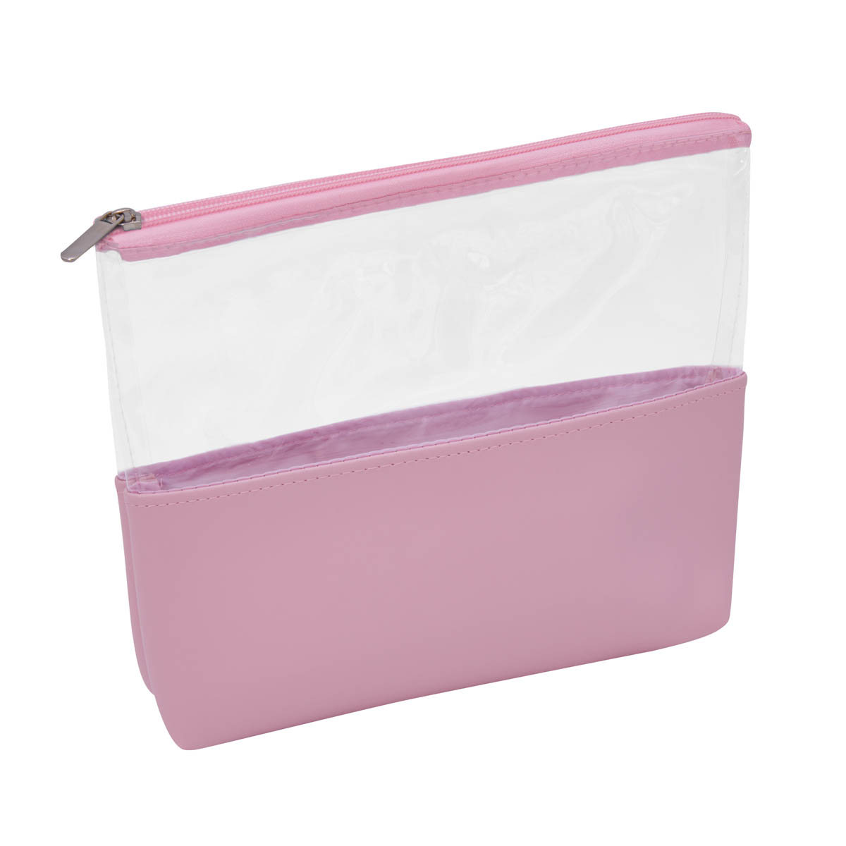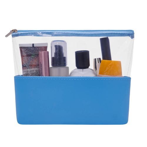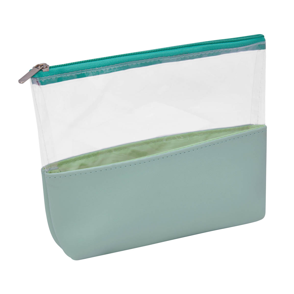 COSMETIQUERA ESMERALDA(Cosmetiquera con cierre. Diseño combinado de PVC transparente y curpiel de color en base.)