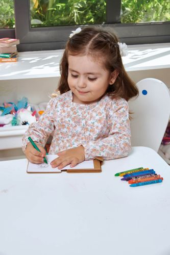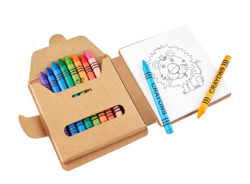 LIBRETA CAMELOT(Libreta con 40 hojas, 12 hojas con dibujos de animales y 28 hojas blancas. Incluye compartimento 11 crayones de colores.)