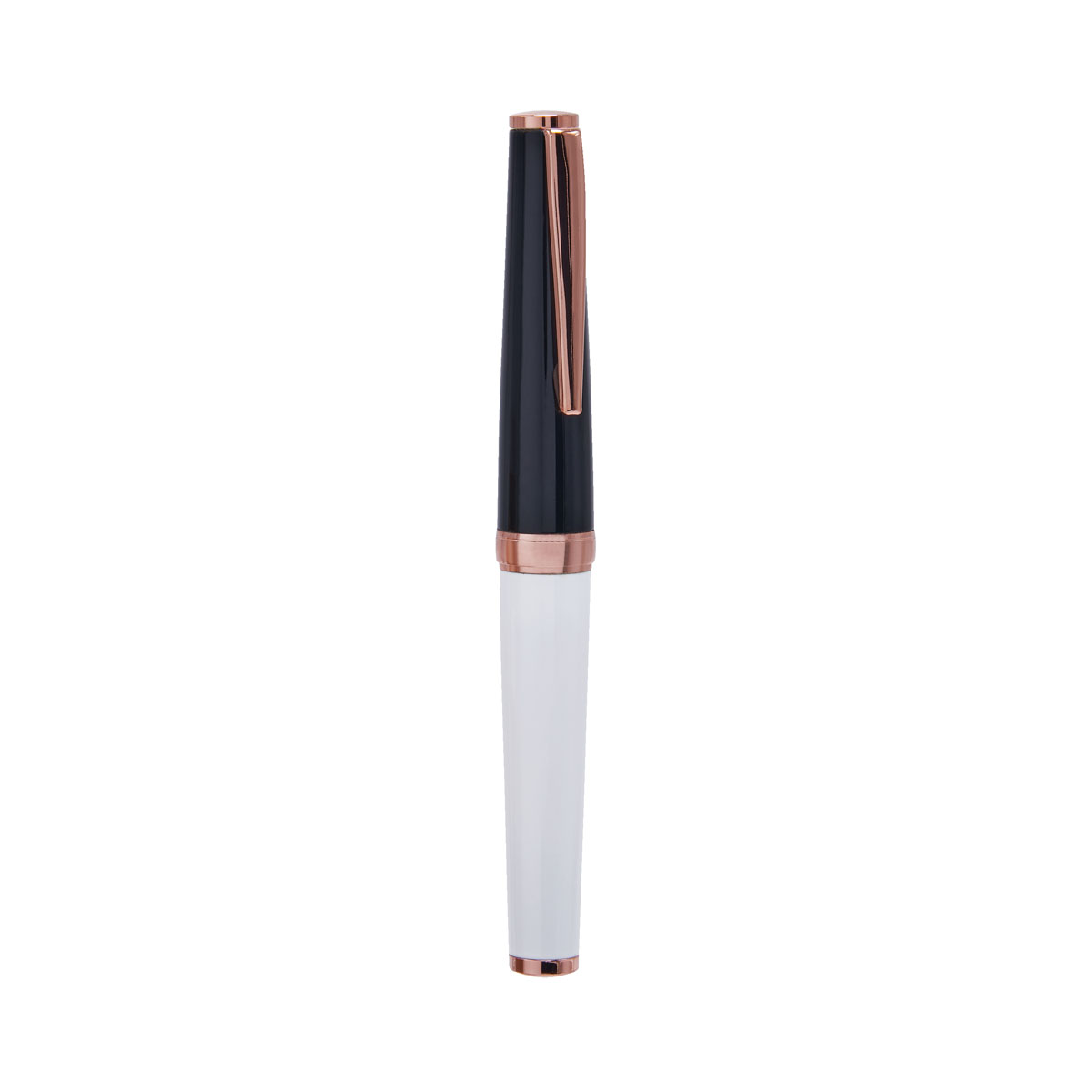 BOLíGRAFO AFFARI(Bolígrafo metálico con tapón. Cuerpo en color blanco con punta dorada. Tapón en color negro y clip dorado. Incluye funda.)