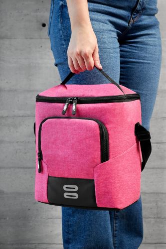 HIELERA JASPEADA(Hielera con interior plastificaco y sellado. Bolsa princiapl y bolsa frontal con cierre. Incluye asa de agarre superior y correa para hombro ajustable.)