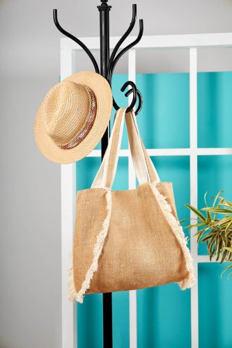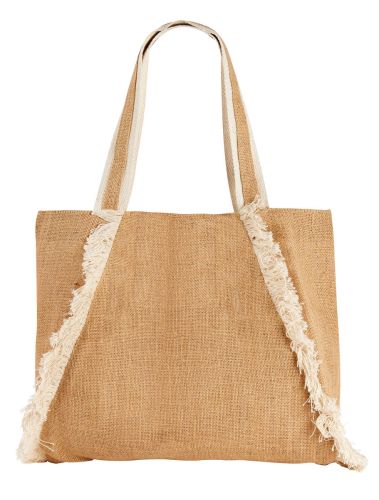 BOLSA ALIA(Bolsa con fuelle. Asas de algodón y yute. Compartimento principal con velcro. Flecos de algodón.)