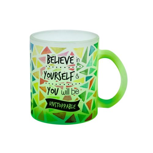 TAZA DE VRIDIO SUBLIMACIóN(Taza de vidrio para sublimar con degradado de color en la base y asa. Venta caja cerrada de 36 piezas.)