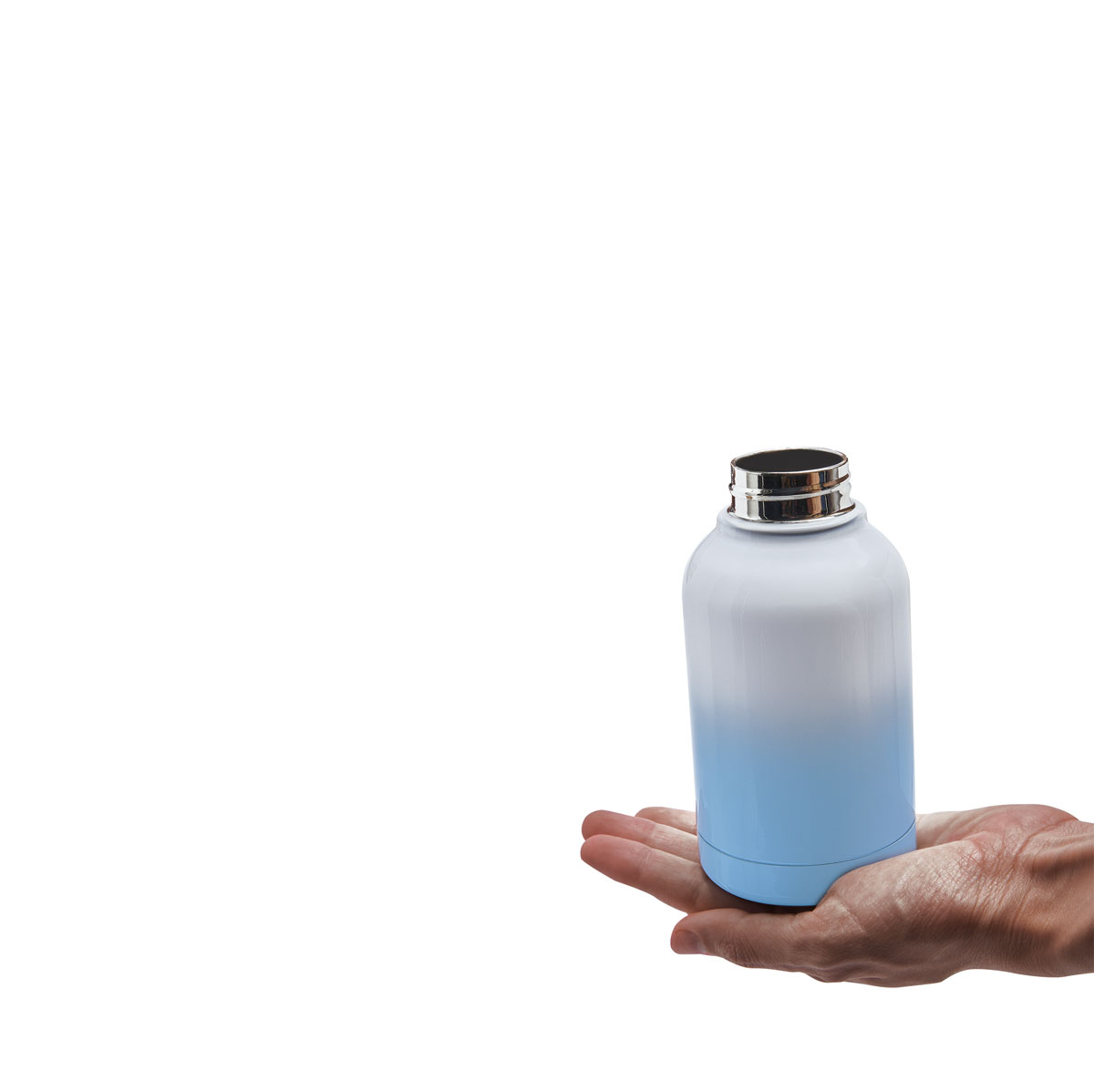 TERMO MINI BOTELLA(Mini termo color degradado. Doble pared. Pared interna y externa de acero inoxidable. Sellado al vacío. Mantiene temperatura caliente 6 hrs y temperatura fría 8 hrs aproximadamente. Tapa con sistema de rosca. Termo pintado a mano por lo