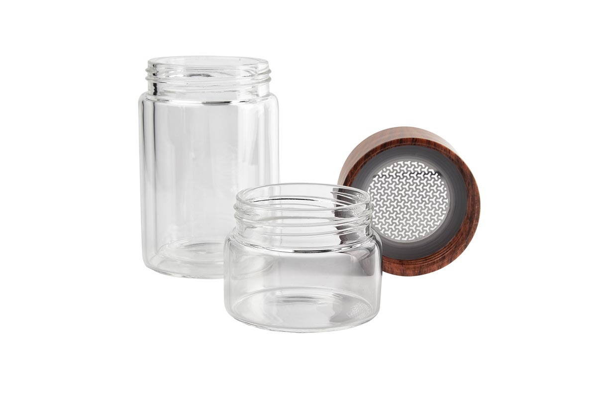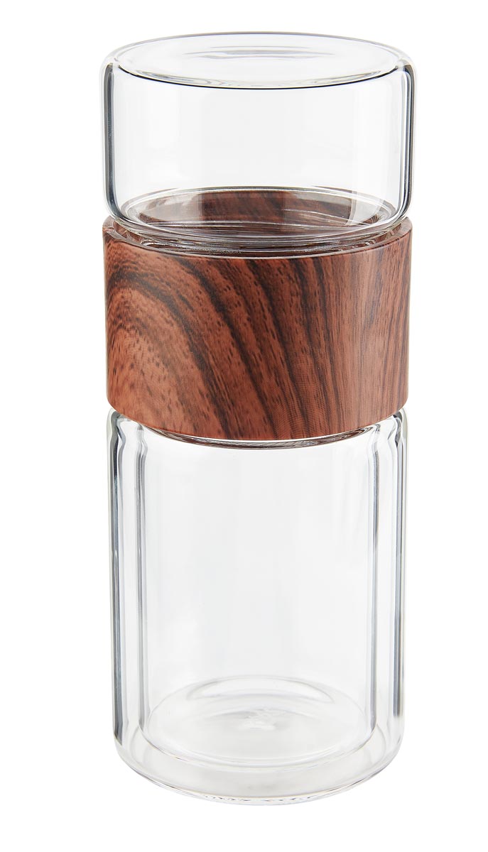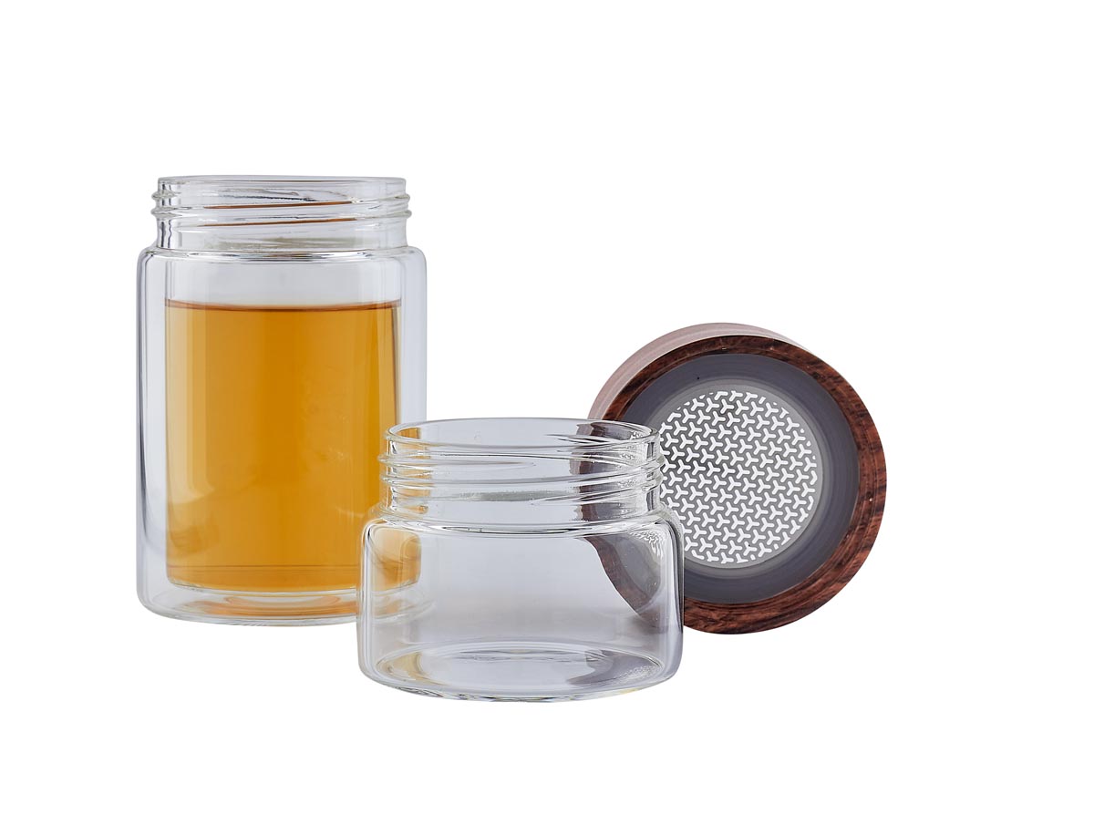 TERMO DE VIDRIO NANKIN(Termo de vidrio de doble pared para bebidas calientes y frías. Evita quemaduras con su doble vidrio y tapa de rosca que evita derrames. Contiene una separación de infusor para té de acero inoxidable removible. Su colador y doble vas