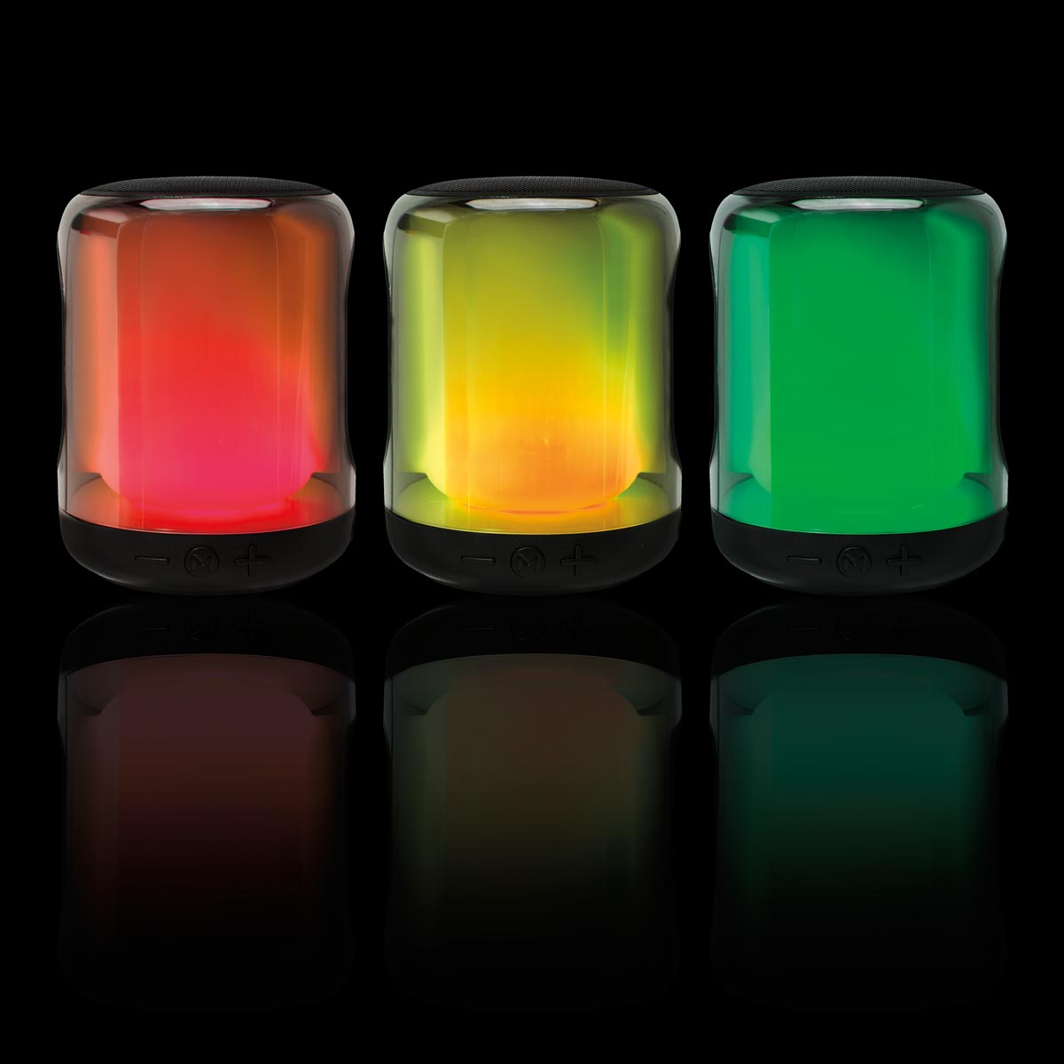 BOCINA FENRIR(Bocina bluetooth recargable con luz RGB ajustable a 10 efectos diferentes. Reproducción de música 4 hrs aproximadamente. Rango de conexión 10 metros. Cuenta con puerto para tarjeta TF, puerto USB, puerto auxiliar 3.5 mm y puerto tipo C. Rad