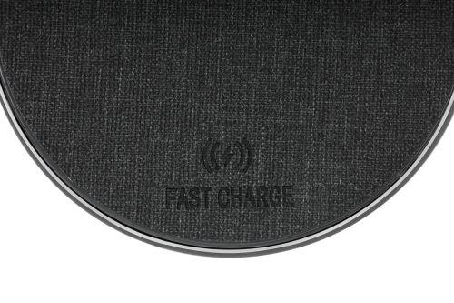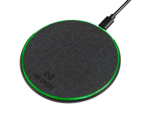 Cargador inalámbrico fast charge. Velocidad de carga: 5W/7.5W/10W/15W. Se enciende luz color verde cuando está en reposo y luz color azul cuando está en proceso de carga. Incluye cable auxiliar tipo C y caja individual.