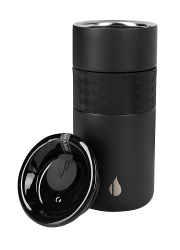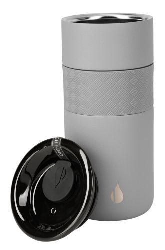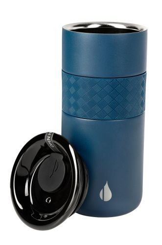Tecnología TrueBarrierT que usa aislamiento de triple pared. Doble pared de acero inoxidable y una capa de revestimiento de cobre. Cerrado al vacío. Material BPA free. Tapa de cerámica con tapón de seguridad, su forma evita derrames y quemaduras al tomar.