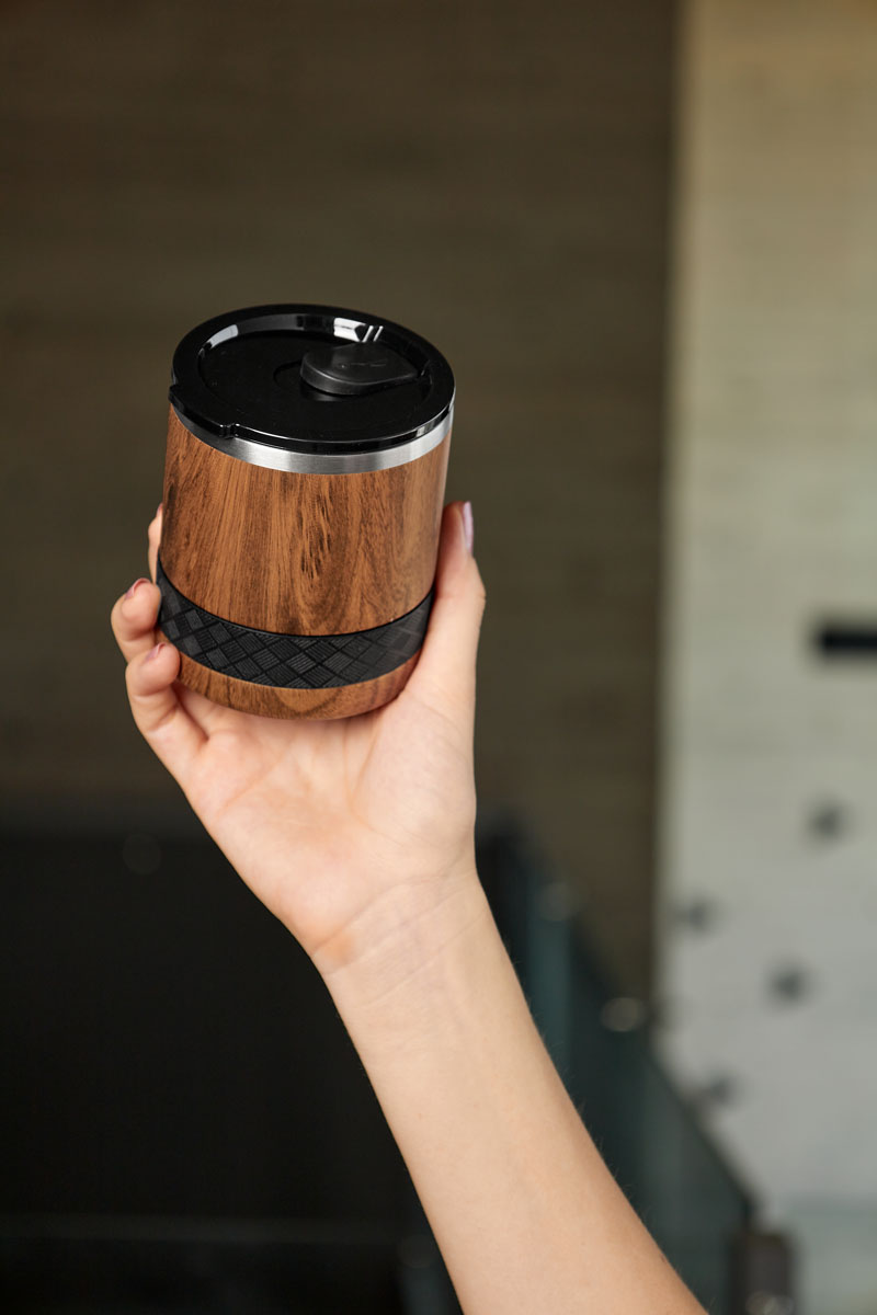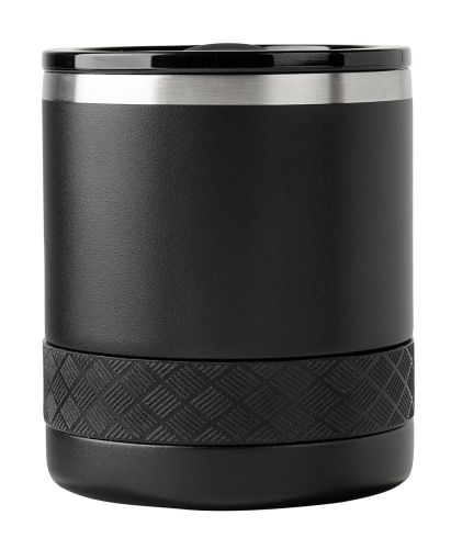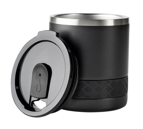 Tecnología TrueBarrierT que usa aislamiento de triple pared. Doble pared de acero inoxidable y una capa de revestimiento de cobre. Cerrado al vacío. Material BPA free. Tapa de tritan con deslizador para evitar derrames. Banda de silicón texturizada antide