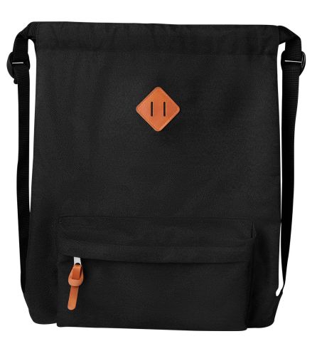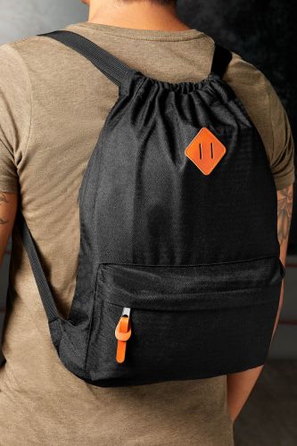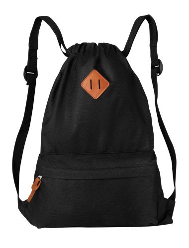 Bolsa-mochila con tirantes gruesos ajustables con broche de plástico y cerrado de jareta. Incluye bolsillo frontal con cierre.