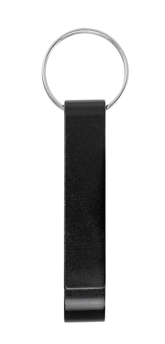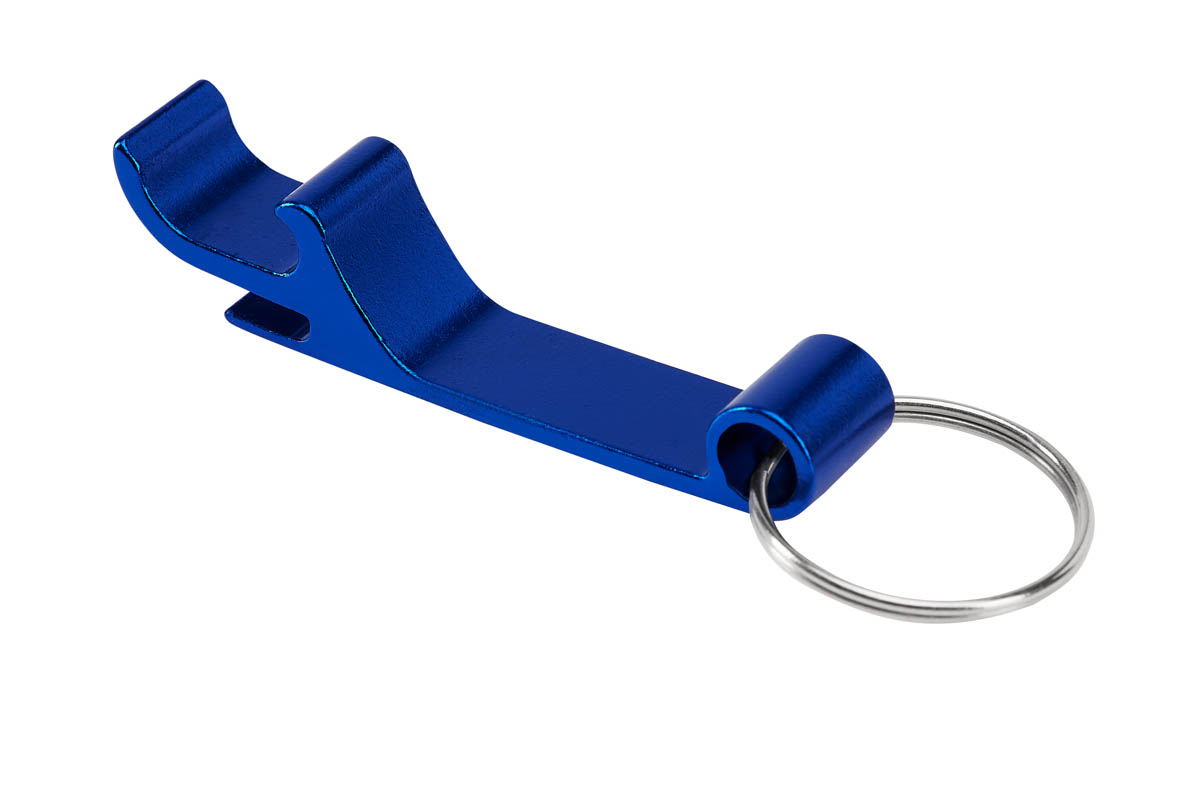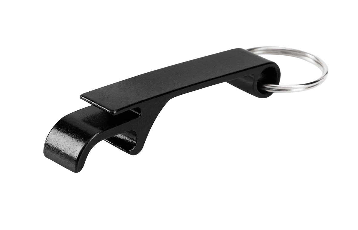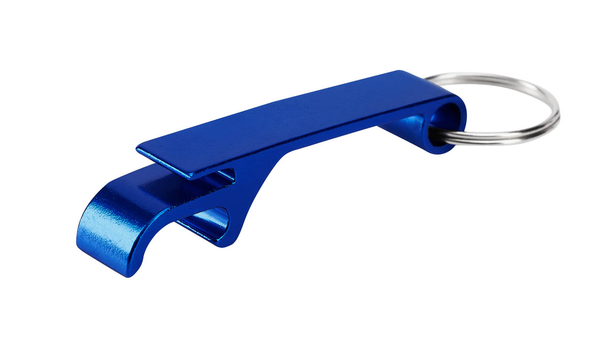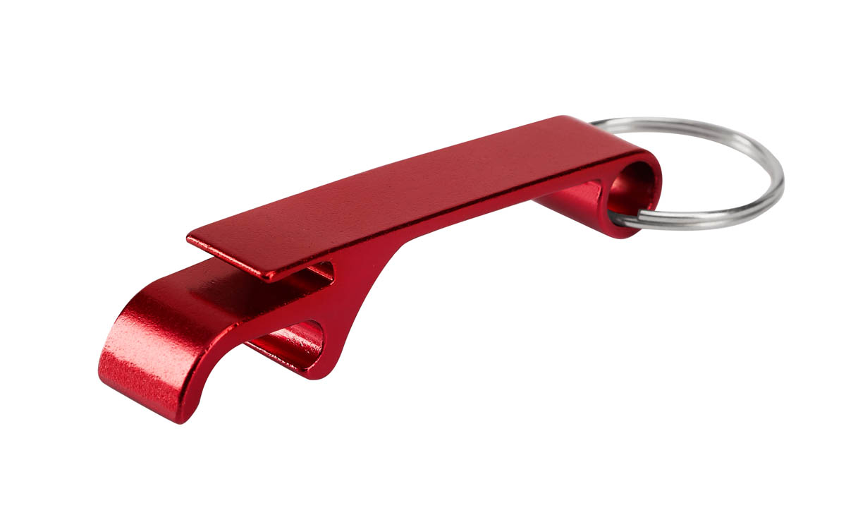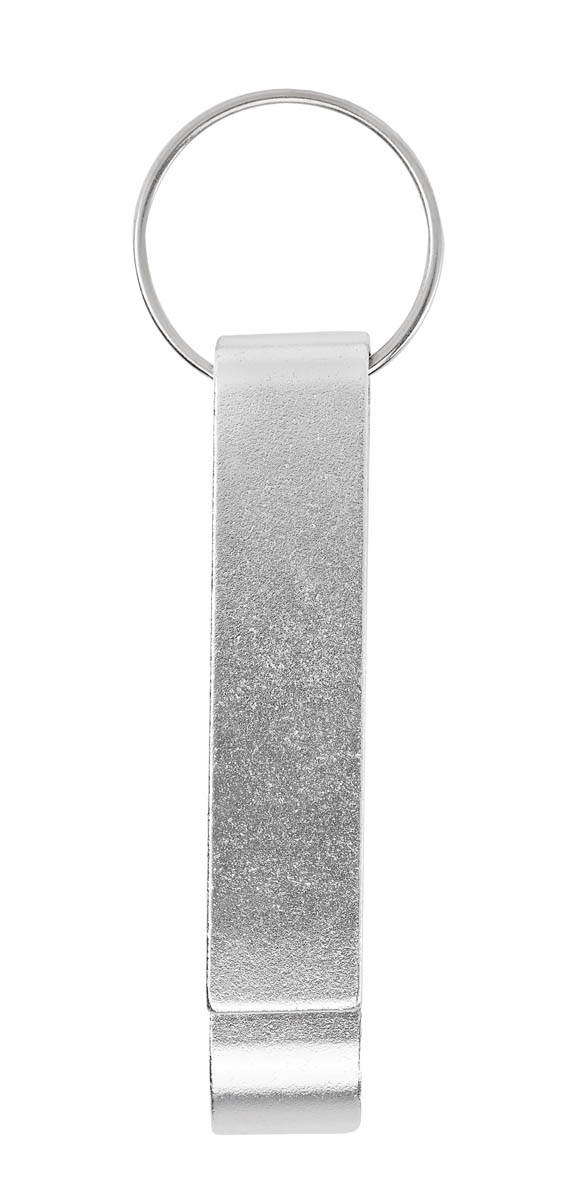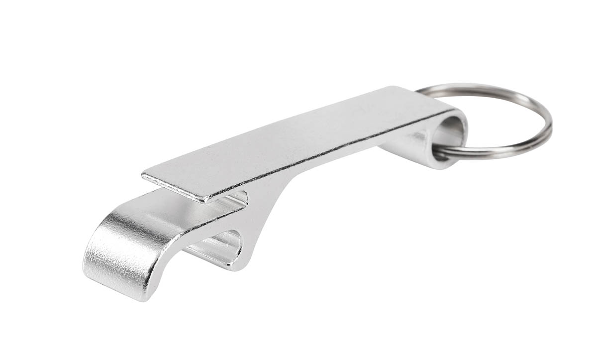 Llavero metálico con función de destapador.