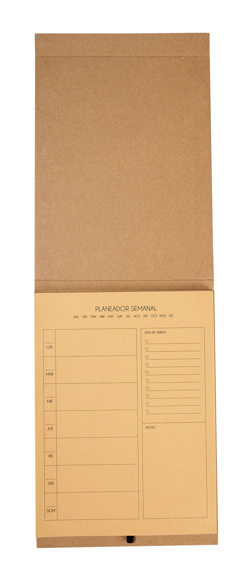 Libreta ecológica tamaño profesional con planeador semanal. Organiza fácilmente tus actividades y logra tus objetivos semanales. Incluye pasta dura de cartón, 80 hojas ecológicas y elástico para bolígrafo.