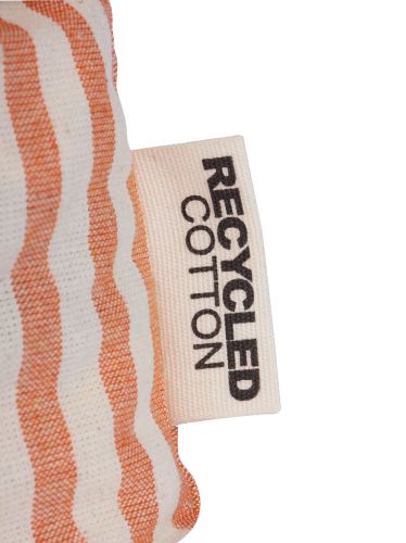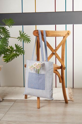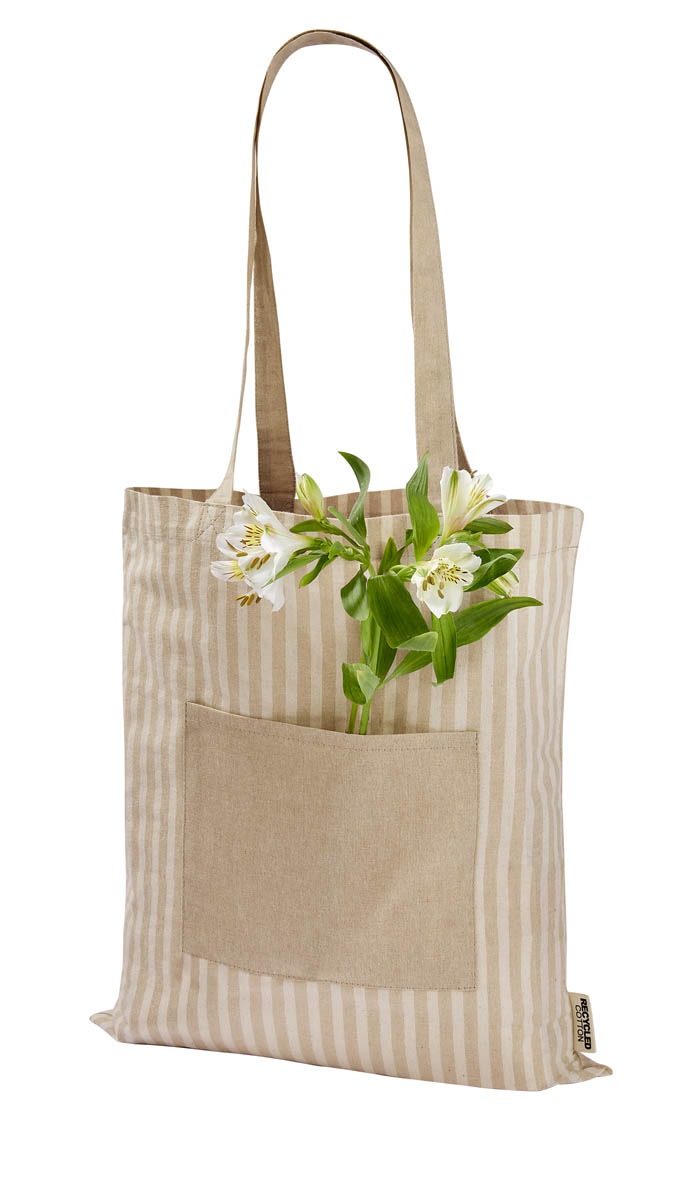 Bolsa ecológica de algodón reciclado. Sin fuelle. Incluye bolsillo frontal. Estampado de rayas.