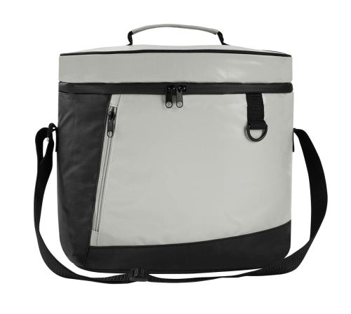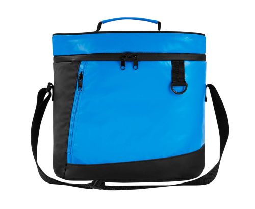 Interior y exterior plastificado impermeable. Bolsa principal con cierre, bolsillo frontal con cierre. Incluye asa de mano y correa larga ajustable.
