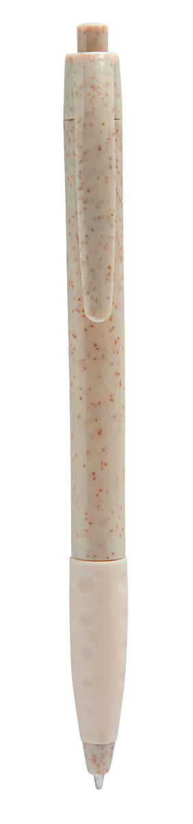 Material eco-friendly a base de fibra de trigo. Incluye grip de silicón antiderrapante. Mecanismo pulsador.