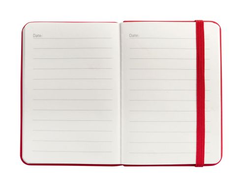 Libreta con 100 hojas de raya. Cada página está diseñada con un apartado especial para poner la fecha, permitiéndote organizar tus notas y escritos de manera cronológica. Incluye elástico para cerrar. Con su tamaño compacto, se adapta fácilm