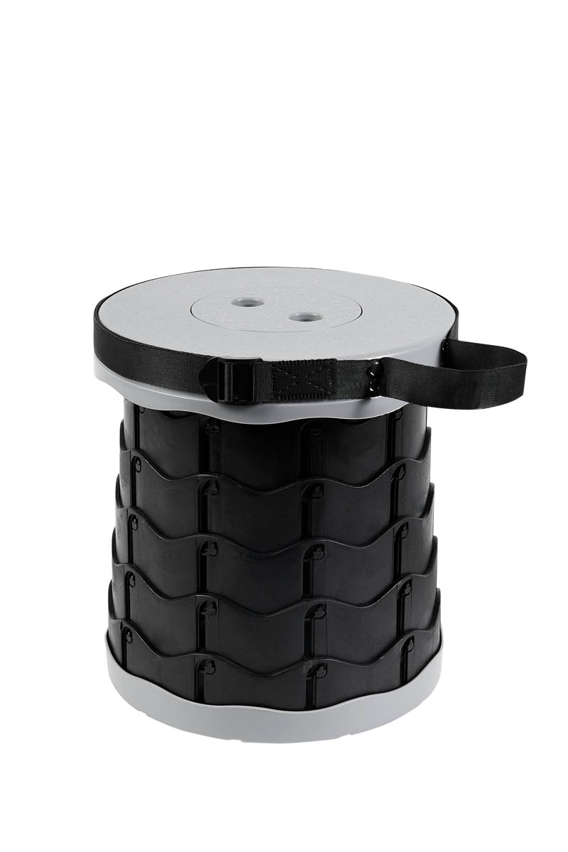 Banco portátil, se pliega y despliega en segundos. Sistema de agarre que lo hace estable, al mismo tiempo fácil de guardar. Altura ajustable hasta 45 cm y soporta hasta 130 kg. Incluye asa ajustable para transportar fácilmente.