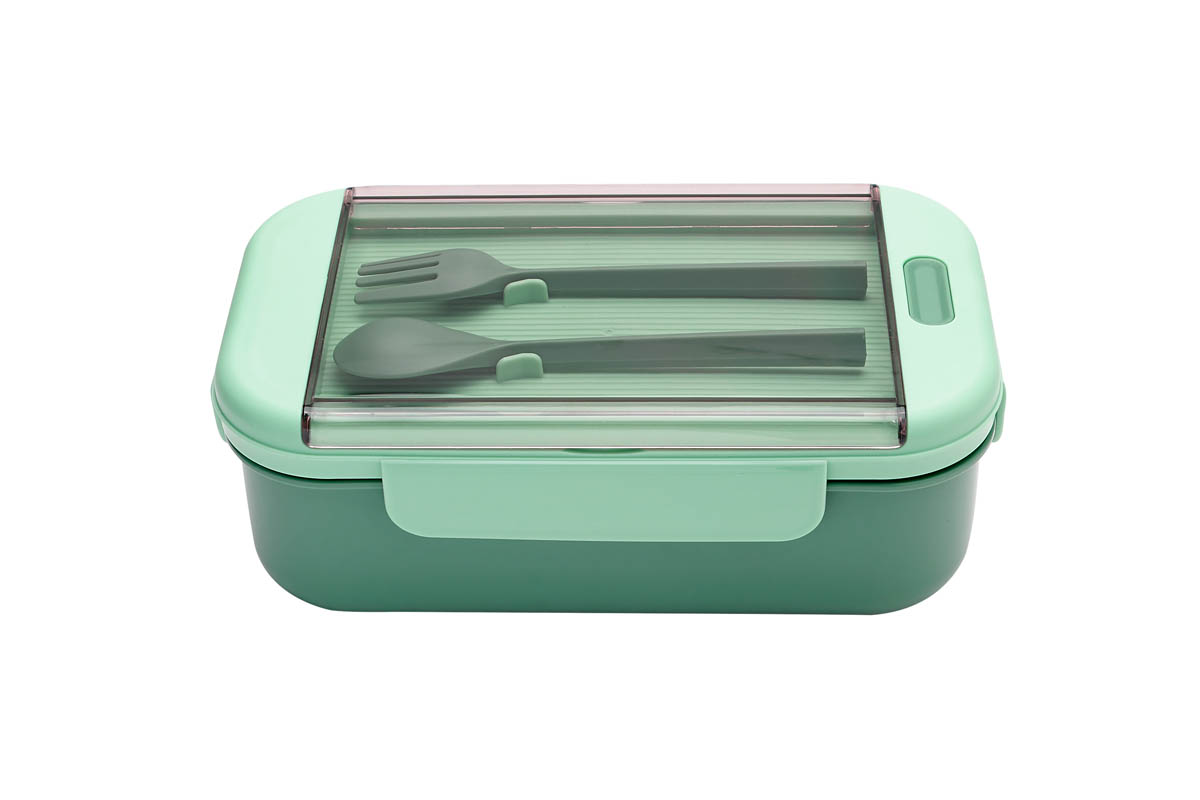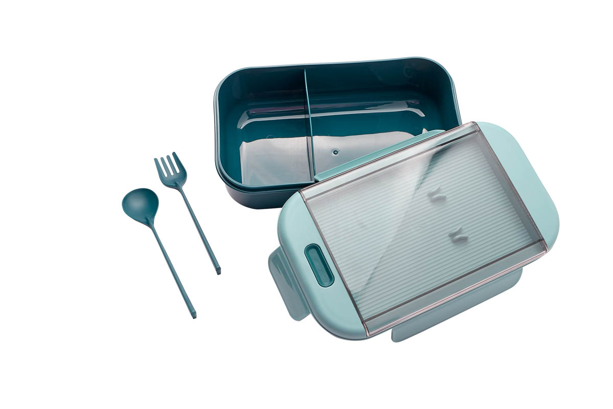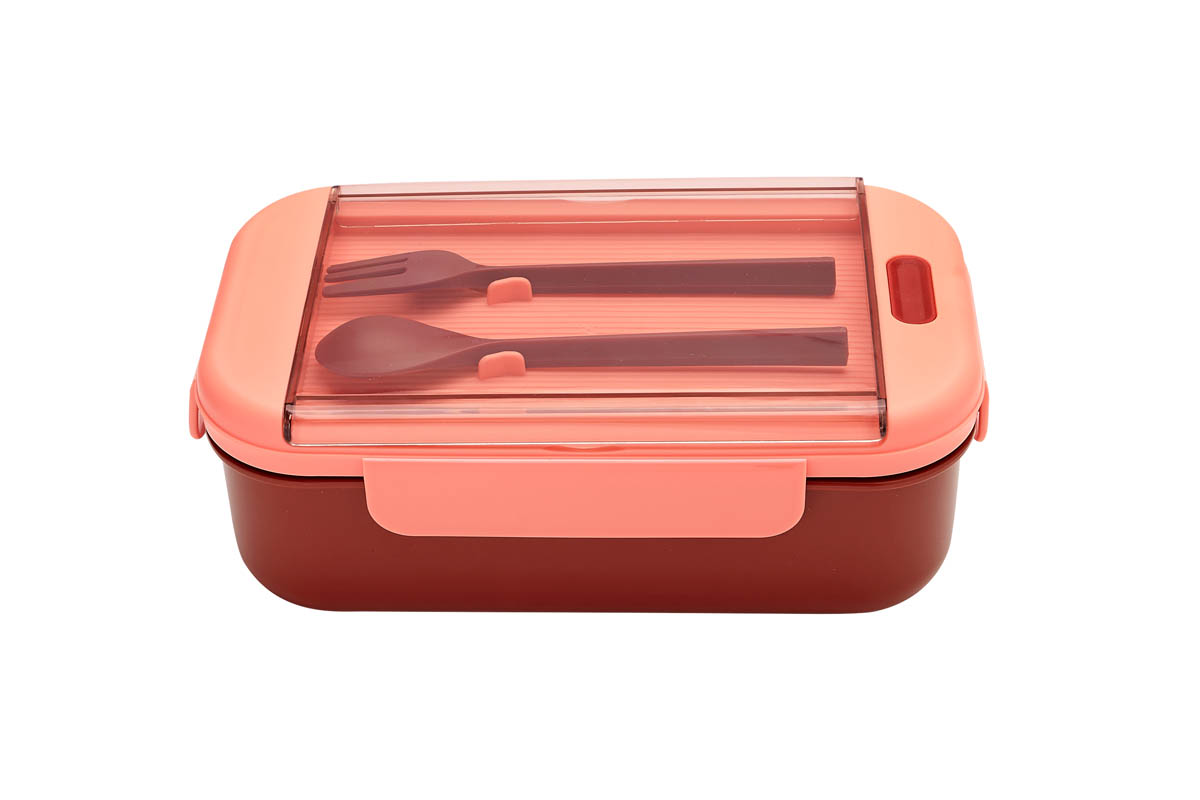 Contenedor para alimentos. Interior con 1 división para separar tu comida. Tapa con cierre hermético que evita derrames, incluye sobretapa con 1 cuchara y 1 tenedor de plástico. Incluye caja individual.