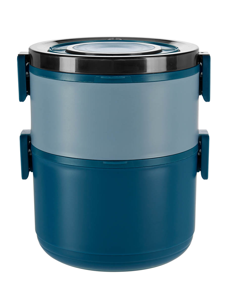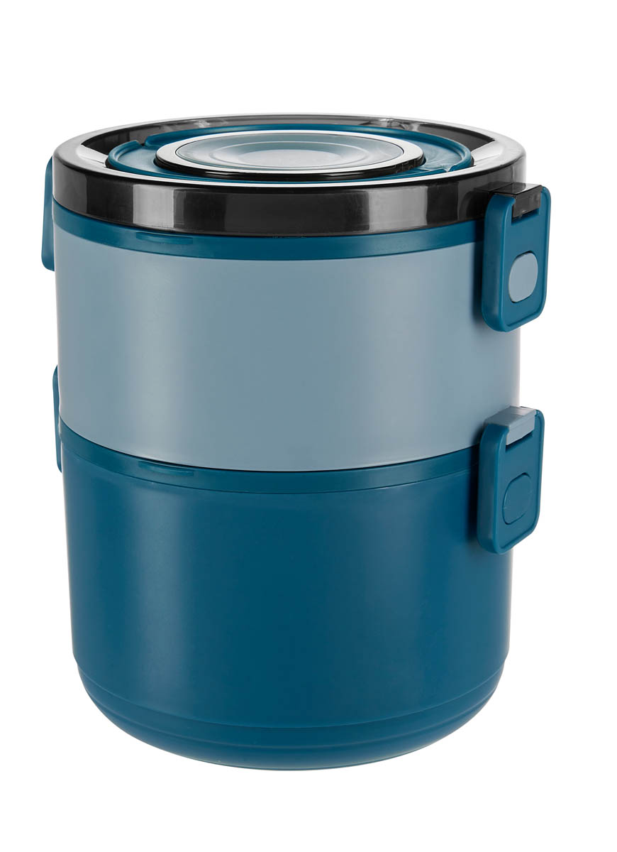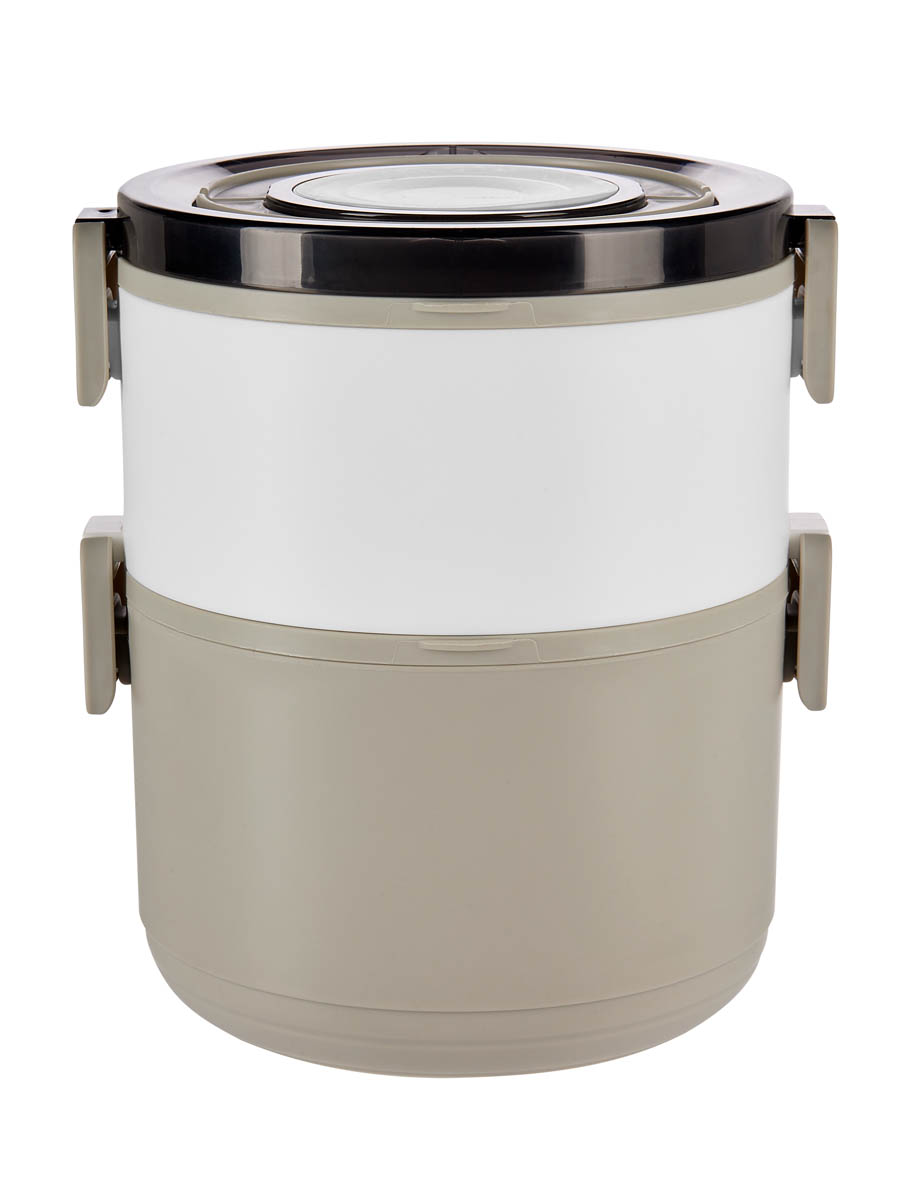 Contenedor de alimentos con dos pisos independientes que permite separar tus alimentos y no mezclar sabores. Fabricado con una pared sencilla de plástico, ideal para el uso de microondas. Tapa con válvula de seguridad y función de sellado para evitar derr