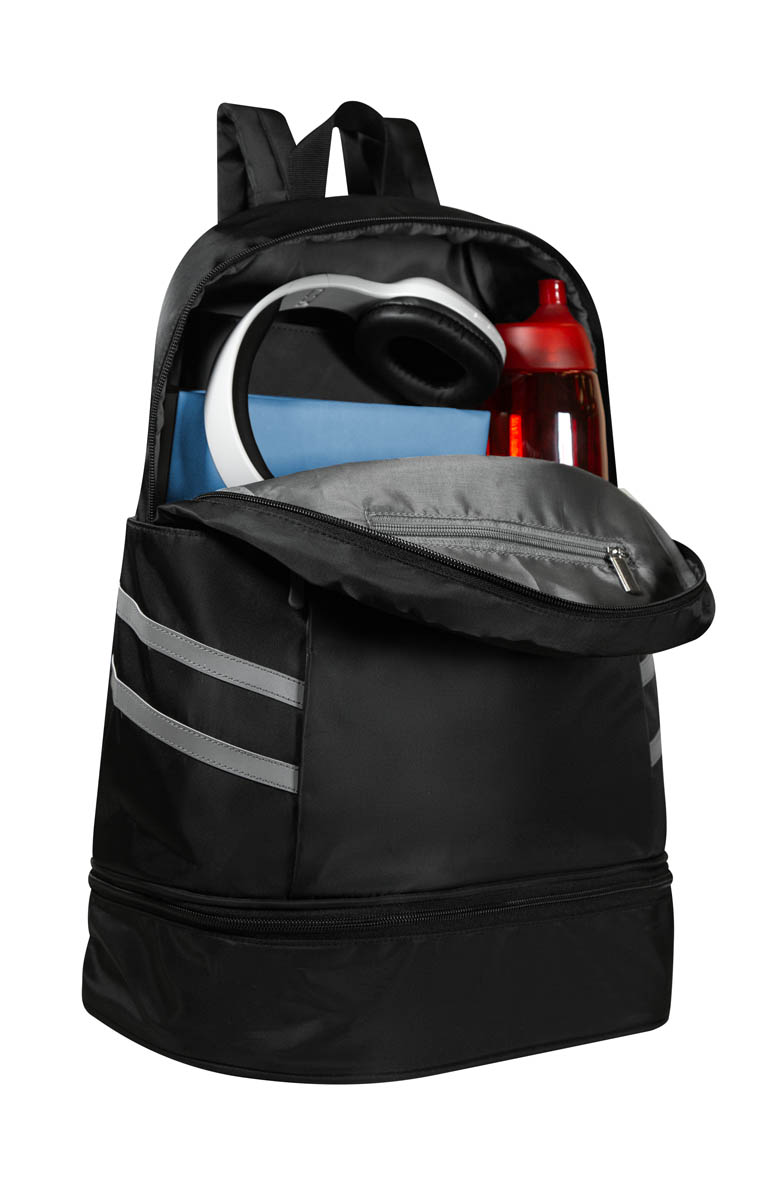 Mochila casual para acompañar tu estilo de vida activo. Su diseño cuenta con un compartimento principal equipado con separación de malla, ideal para tu computadora u otros accesorios, además de dos pequeños bolsillos de malla para obj