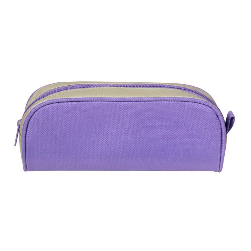 Estuche escolar bitono de poliéster con cierre en el compartimento principal. Ofrece amplio espacio para las herramientas escolares esenciales.