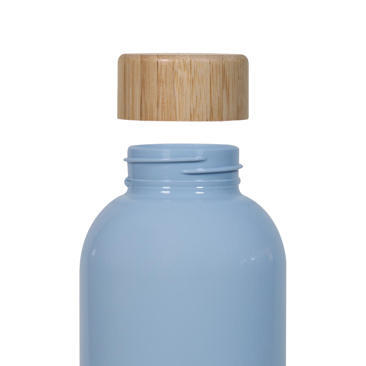 Cilindro de plástico con tapa de bambú. Sistema de rosca twist-off que permite abrir y cerrar la tapa en un giro. No exponer el cilindro a temperaturas mayores a 40 °C durante su almacenamiento y transformación. Mantener en su empaque individual antes y d