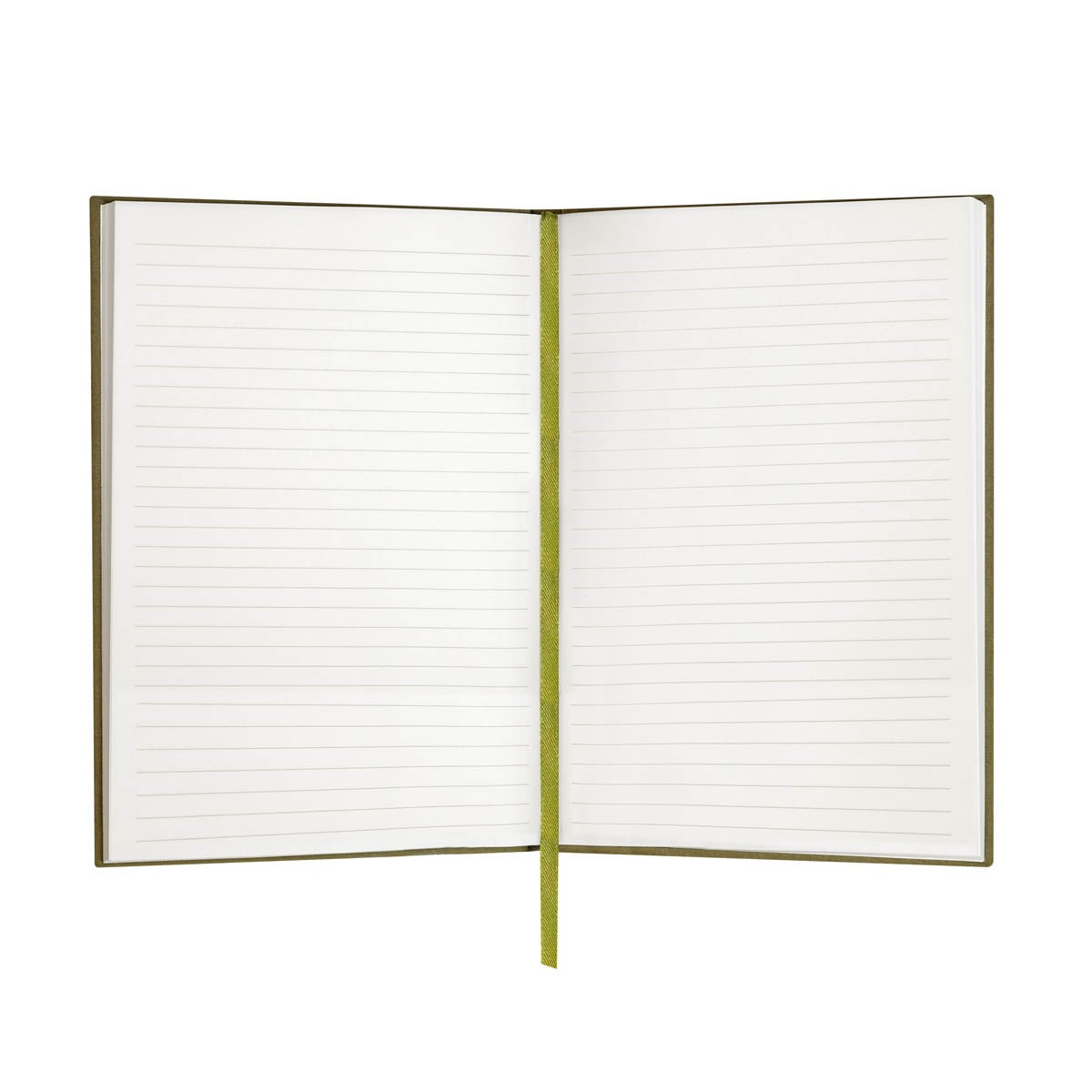 Libreta con 80 hojas con dos patrones: 48 hojas de raya y 32 hojas de puntos. Pasta rígida y cubierta suave al tacto. Incluye elástico para cierre y separador de hojas.