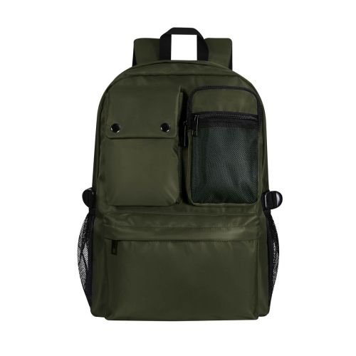 Mochila con amplia bolsa principal con compartimento interno para laptop de hasta 15 y dos bolsas internas. Cuenta con 3 bolsillos frontales, dos de ellos con cierre y uno con sistema de botones. Tiene un par de ajustadores expandibles y laterales de mall