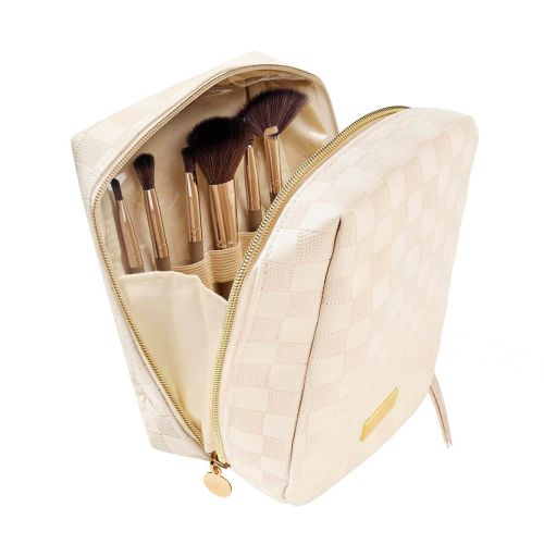 Organizador de cosméticos.Compartimento con abertura amplia facilita el acceso y la organización de brochas y accesorios, manteniéndolos siempre en orden y a la vista. Además, la placa metálica al frente añade un toque de distinción. Ideal para qui