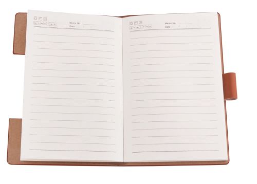Libreta con 70 hojas de raya. Incluye bolígrafo y notas adheribles de colores.