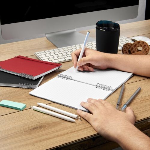 Libreta ecológica con 70 hojas a rayas. Cubierta de cartón. Incluye espiral metálico y elástico para cerrar. Su diseño divide el espiral aportando un toque distintivo de las libretas convencionales. Lu pasión por el medio ambiente, haz una elección