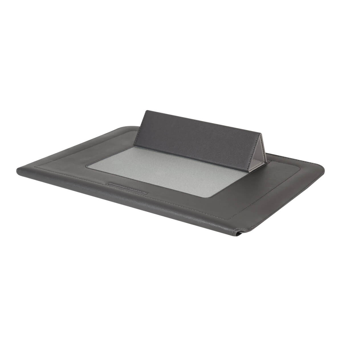 Funda para laptop de hasta 15. Su diseño se dobla ingeniosamente para convertirse en un soporte ergonómico, permitiéndote trabajar de manera más cómoda en cualquier lugar. El cierre con solapa magnética asegura un acceso rápido y fácil, mientras qu